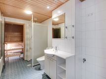 - Suihku, Pesukoneliitäntä, Tilaa pesukoneelle, Allas, WC-istuin, Peilikaappi