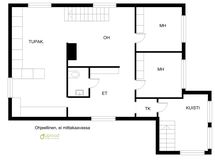 - K+rt+oh+2mh+wc+et+tk+kuisti n. 104 m2, kellaritilat n. 80 m2, jossa psh+s+khh+oleskelutilat+tekn.tila+talouskellari+varastot