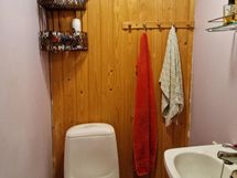 - Pesutilojen kuvaus: Pesutilat kellarikerroksessa. Pinnat teknisen ikänsä päässä. Vesikiertoinen lattialämmitys. Varustus: suihku. Erillisen WC:n kuvaus: 1) Asuinkerroksen wc:n pinnat uusittu: seinissä laminaattipaneeli, yläosa maalattu. Lattiaan asennettu vedeneristys ja laatoitus. Allaskaappi.