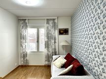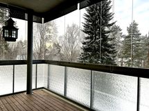 Olohuoneesta on käynti tilavalle, lasitetulle parvekkeelle, josta avautuvat rauhalliset näkymät, vaikka sijainti on aivan keskustan palveluiden tuntumassa.