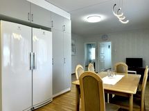 Säilytystilaa on poikkeuksellisen hyvin – kaapistojen lisäksi peräti kaksi vaatehuonetta, joista toinen sijaitsee heti sisääntulon yhteydessä ja toimii erinomaisena arjen “välivarastona” kengille ja kausivaatteille.