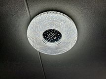 Huoneiston glamourista ilmettä korostavat kimaltavat kiinteät kattovalaisimet, jotka kuuluvat kauppaan ja luovat tilaan oman, hienostuneen tunnelmansa.