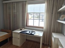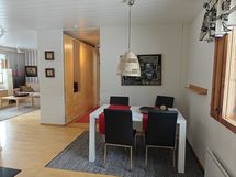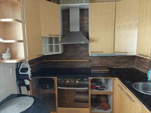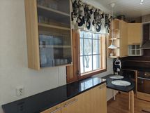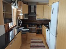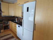 Liesi: keraaminen. Työtasot: laminaatti. Kylmäsäilytys: jääkaappi/pakastin. Varustus: liesituuletin, astianpesukone.
