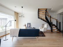 Alakerrassa on kodin avara olohuoneen ja L-mallisen keittiön yhtenäinen tila. Keittiössä on astianpesukone, täysikorkea jääkaappi ja pakastin sekä reilusti työskentely tilaa. Olohuoneessa on hyvin tilaa isommallekin ruokailu- ja oleskeluryhmälle.