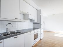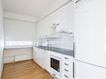 - Keittiön varusteet: Jääkaappipakastin, erillisuuni, liesi, liesituuletin ja astianpesukone. Liesi: Keraaminen liesi. Työtason materiaali: Laminaatti.