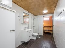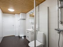 - Pesutilojen varusteet: WC-istuin, suihku, suihkuseinä, pesukoneliitäntä, peilikaappi, pesuallas, allaskaappi ja bidee-suihku.