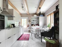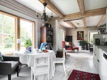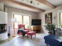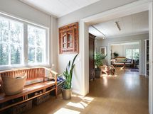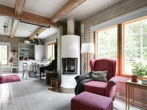 Puu- ja hirsirakenteisessa päärakennuksessa on asuinalaa 262 m2 ja kerrosalaa 293 m2.