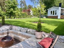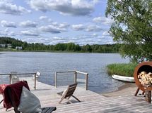 Rannan puolella pihan muokkaus, Vanhaa maa-ainesta pois ja tilalle multa ja siirtonurmi, sekä pihavalot (Bluetooth-ohjaus). Rantaan, sekä veteen n. 10m matkalle suodatinkangas ja tuotu hiekkakuorma.