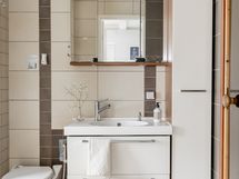 - Varustus: lattialämmitys, wc-istuin, suihku, peilikaappi, kylpyhuonekaapisto. Erillisen WC:n kuvaus: Kaksi wc:tä, joista toinen sijaitsee erillisenä ja toinen kylpyhuoneen yhteydessä. .