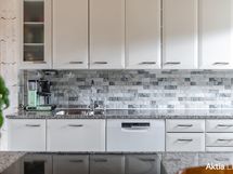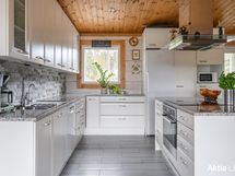 - Liesi: erillisuuni, liesitaso. Työtasot: kivi. Kylmäsäilytys: jääkaappi/pakastin. Varustus: astianpesukone, liesituuletin / hormi.