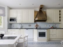 - Liesi: keraaminen, erillisuuni. Työtasot: kivi. Kylmäsäilytys: jääkaappi, pakastin. Varustus: mikroaaltouuni, astianpesukone, liesituuletin / hormi.