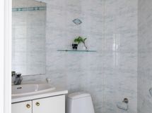 Varustus: wc-istuin, peili, kiinteät valaisimet, kylpyhuonekaapisto,