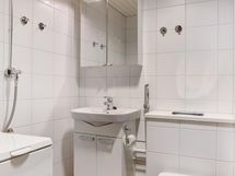 - Kylpyhuone, suihku, peilikaappi, pesukoneliitäntä, lattialämmitys, kylpyhuonekaapisto, kiinteät valaisimet