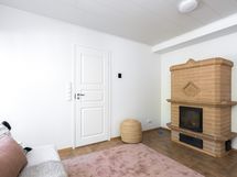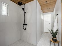lattia laatoitettu, seinät paneloitu, sähkökiuas
