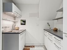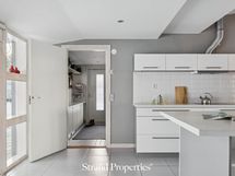 - Tilava Kvik keittiö, johon tulvii valoa kahdesta suunnasta. Runsaasti säilytystilaa ja työtasoa. Kiinteä saareke. Keittiön etupihan puolella pariovesta käynti ulos. Keittiössä varaus kaasuliedelle. Samsung side-By-side jääkaappipakastin 2020, Aeg uuni 2025, AEG integroitu mikroaaltouuni, AEG astianpesukone 2018. Lattia: laatta