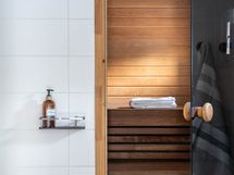 - Kuvaus: Kylpyhuoneesta käynti ikkunalliseen saunaan. Sauna uusittu 2025 (uusittu lauteet, seinäpaneelit ja kiuas). Iki-kiuas.