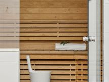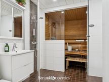 - Kuvaus: Kylpyhuoneen yhteydessä on sauna, joka on myös uusittu 2011. Saunassa lasiovi ja lasiseinä. Harvian tornikiuas.