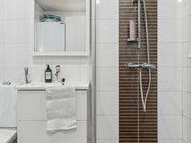 - Pesutilojen kuvaus: Kylpyhuone uusittu osakkaan toimesta vuonna 2011. Kylpyhuoneessa suihku, suihkuseinä, pesuallas, allaskaappi, peili, wc-istuin. Lattia: laattaa