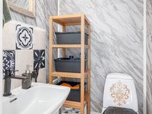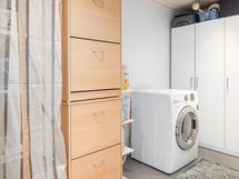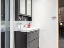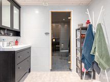 - Pesutilojen varusteet: WC-istuin, suihku, suihkuseinä, lattialämmitys (Sähkötoiminen), peilikaappi ja allaskaappi. Pesutilojen kuvaus: Kylpyhuone uusittu aikaisemman omistajan toimesta v. 2015. Erillisten WC:n lukumäärä: 2. Erillisen WC:n varusteet: WC-istuin ja peili.
