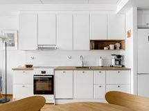 - Jääkaappi/pakastin, induktioliesi, astianpesukone, kaapistot, liesituuletin/ aktiivihiilisuodatin
