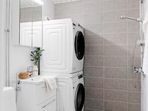 - Kylpyhuone, suihku, peilikaappi, pesukoneliitäntä, lattialämmitys, kiinteät valaisimet