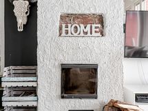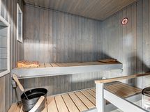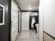 - Kuvaus: Sähkökiuas, seinät puupaneeli ja lattia laatta.