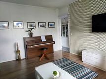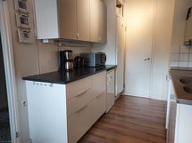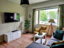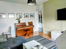 Tilava olohuone mahdollistaa monipuolisen kalustuksen ja etätyöpisteen sijoittamisen. Eteisen yhteydessä oleva vaatehuone tuo käytännöllistä säilytystilaa. Keittiötä on päivitetty ja liesi sekä astianpesukone on uusittu vuonna 2020.
