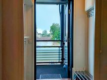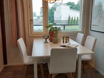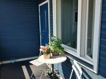 Asunto on päätyhuoneisto, mikä tuo lisää luonnonvaloa ja rauhallisuutta. Voit nauttia aamukahvit huoneiston ulkopuolella, koska sinne sopii mainiosti muutamat ulkotuolit ja pöytä. Arjen luksusta.