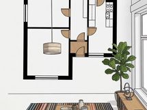 Kuvissa oleva asunnon pohjakuva on suuntaa-antava.