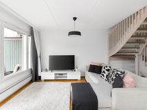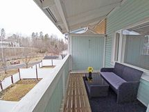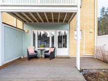 - Valoisa päätyhuoneisto/ koillinen-kaakko-lounas. Näkymät omalle pihalle ja yhtiön pihapiiriin. Terassi/piha/ parveke: aurinkoinen oma aidattu piha ja iso terassi. Terassiparveke on katettu, josta näkymät taloyhtiön pihapiiriin.