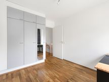 - Kahden makuuhuoneen kiinteät kaapistot, eteisen liukuovikaapisto, iso huoneistokohtainen varasto (erillisessä rakennuksessa).