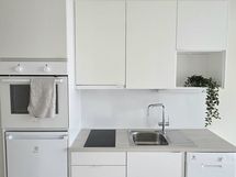 Keittiön varusteet: Jääkaappi, erillisuuni, liesi, liesituuletin ja astianpesukone. Liesi: Induktioliesi.