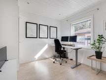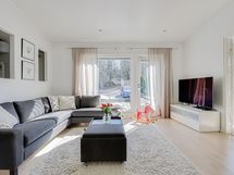 Tervetuloa tutustumaan tähän avaraan ja tyylikkääseen Kirkkonummen halutulla Sepänkannaksen alueella. Yhteen tasoon rakennettu asunto tarjoaa reilunkokoiset huoneet, oman tontin (1247m2) sekä käytännöllisen autokatoksen kahdelle autolle sähköauton latausasemalla-täydelliset puitteet huolettomaan ja mukavaan asumiseen. Kodikkaassa olohuoneessa on tyylikäs varaava takka ja keittiössä Festivon jääkaappi-pakastin yhdistelmä, johon mahtuvat suuremmankin juhlan tarjoilut. Varaava takka ja viilennystoiminnolla varustettu ilmalämpöpumppu varmistavat miellyttävän sisälämpötilan ympäri vuoden. Yksi makuuhuoneista on muutettu tyylikkääksi walk-in pukeutumishuoneeksi, joka tuo ripauksen luksusta arkeen- ja jonka säilytysjärjestelmä sisältyy kauppaan.