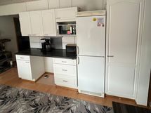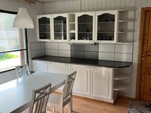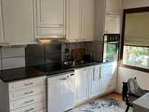 Tilaa isolle ruokapöydälle, Paljon kaappitilaa, Paljon työskentelytilaa, Lasikaapit, Astianpesukone, Liesituuletin, Liesi tai uuni erikseen, Jää-viileäkaappi