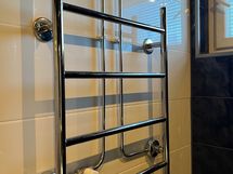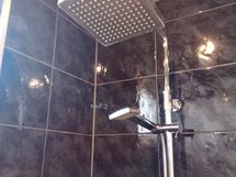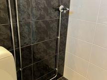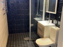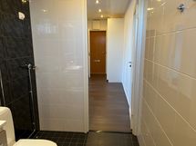 - Suihku, Suihkuseinä, Pesukonevalmius, Allaskaappi, Rättipatteri, Laattalattia, Halogeenivalot, Laattaseinä, Avattava ikkuna, Lattialämmitys
