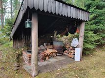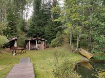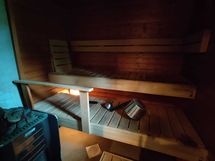 Saunarakennus: Saunarakennuksessa kodinhoitohuone, takkahuone, parvi, kylpyhuone ja sauna.