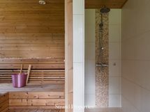 - Varustus: kylpyamme. Erillisen WC:n kuvaus: Erillinen wc kaikissa kolmessa kerroksessa . Varustus: lattialämmitys, bidee-suihku.