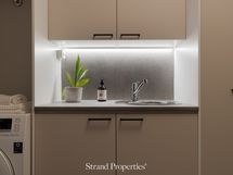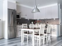 - Liesi: integroitu, induktio, erillisuuni. Työtasot: laminaatti. Kylmäsäilytys: jääkaappi/pakastin. Varustus: mikroaaltouuni, astianpesukone, varattu paikka astianpesukoneelle, kiinteät valaisimet, liesituuletin / hormi.