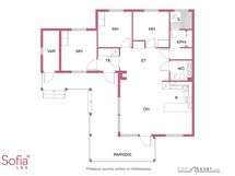 Yksitasoinen huoneisto, jossa eteinen, kolme makuuhuonetta, olohuone, keittiö, ruokailutila, wc, kodinhoitotila, kylpyhuone kahdella suihkulla, sauna. Keittiön kalusteet ja koneet, wc kalusteet uusittu 12/2021. Kodinhoitotilan kalusteet uusittu 10/2022. Pieni taloyhtiö. Hyvät pysäköintitilat. Paritalon toinen puoli on satunnaisessa omassa käytössä. Takka. Ulkovarasto.