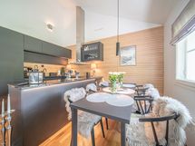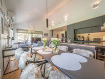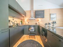 Liesi: integroitu, induktio, erillisuuni. Työtasot: kivi. Kylmäsäilytys: jääkaappi/pakastin, viinikaappi. Varustus: mikroaaltouuni, astianpesukone, kiinteät valaisimet, liesituuletin / hormi. Keittiö ja kodinkoneet uusittu 12/2021.