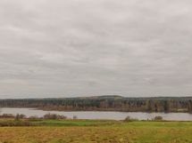 Järvi näkymä mäen päältä. Peltonäkymä