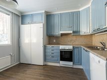 - Keittiön varusteet: Erillinen pakastin (v.2021), jää-viileäkaappi (v.2021), liesi, liesituuletin, uuni ja astianpesukone. Liesi: Keraaminen liesi. Työtason materiaali: Laminaatti.