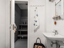 Pesutilojen varusteet: Suihku, pesuallas ja lattialämmitys. Erillisten WC:n lukumäärä: 1. Erillisen WC:n varusteet: WC-istuin, pesuallas, allaskaappi, bidee-suihku ja peilikaappi.