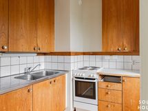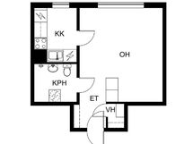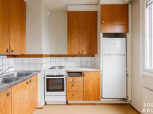 - Keittiön varusteet: Jenkkikaappi ja liesi. Liesi: Sähköhella. Työtason materiaali: Laminaatti.