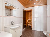 - Sauna, sähkökiuas, kylpyhuone, suihku, peilit, allaskaappi, pesukoneliitäntä, lattialämmitys, kiinteät valaisimet.
