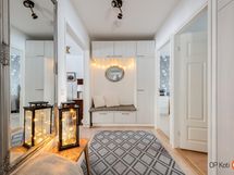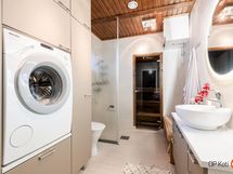 - Sauna, sähkökiuas, erillinen wc, suihku, suihkuseinä, peilit, allaskaappi, pesukoneliitäntä, lattialämmitys, kiinteät valaisimet. Pesutilat ja sauna remontoitu 2017, wc remontoitu 2017.