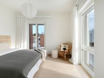 Bostadens absoluta pärla är den rymliga. Denna sällsynta lösning erbjuder ljus och utsikt från olika håll samt möjliggör användning av balkongen långt in på hösten. Läget på översta våningen garanterar lugn och integritet – här bor du i din egen ro ovanför staden.