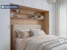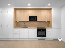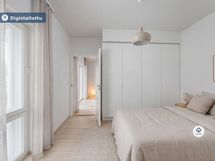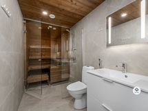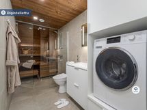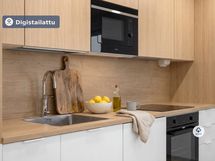 Lägenhetens kök är utrustat med högkvalitativa vitvaror och golven i vardagsrummet och sovrummen är av elegant vinyl. Badrummet har golvvärme, vilket ger extra bekvämlighet i vardagen. Den egna bastun erbjuder avkopplande stunder efter en lång dag.