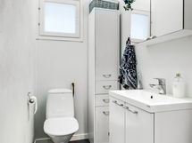 - Pesutilojen varusteet: Suihku, suihkuseinä, pesukoneliitäntä, lattialämmitys ja pesuallas. Erillisten WC:n lukumäärä: 1. Erillisen WC:n varusteet: WC-istuin, peilikaappi, allaskaappi, bidee-suihku ja pesuallas.