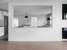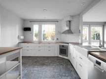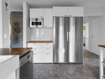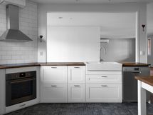 - Keittiön varusteet: Jääkaappi, erillinen pakastin, erillisuuni, liesi, liesituuletin (hormi), astianpesukone, keittiösaareke ja mikroaaltouuni (integroitu). Liesi: Induktioliesi. Työtason materiaali: Puu. - Ikea -keittiökalusteet